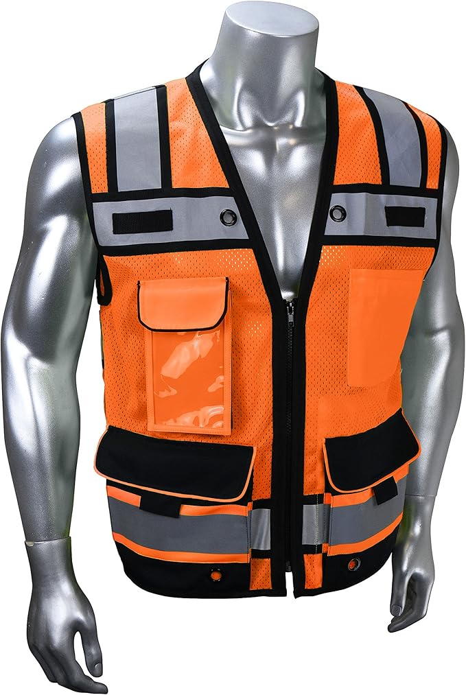 Radians SV65 Heavy Duty Surveyors Safety Vest with Zipper, Large Plan Pocket, Hi-Viz Green or Hi-Viz Orange
