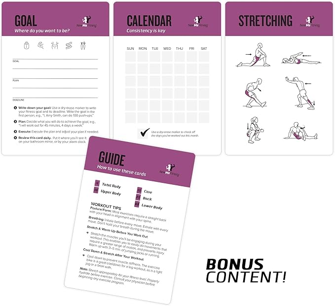 • Large Size - These 3.5" x 5" jumbo workout routine cards are easy to see from a distance without squinting, and still perfectly compact enough to fit into your gym bag or luggage.