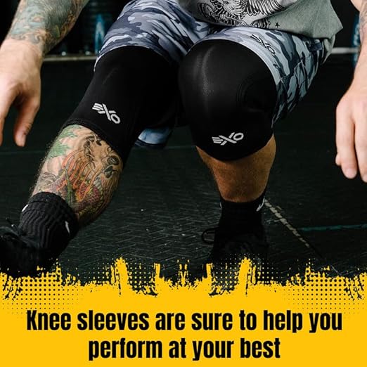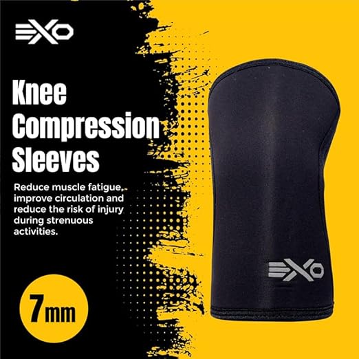 Exo Knee Compression Sleeves, Triple-Reinforcement Neoprene Sleeves for Women and Men, High-Performance Knee Compression Support for Squats, Weight Lifting, Powerlifting & Training Sleeve (7mm, Black)