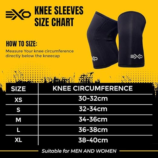 Exo Knee Compression Sleeves, Triple-Reinforcement Neoprene Sleeves for Women and Men, High-Performance Knee Compression Support for Squats, Weight Lifting, Powerlifting & Training Sleeve (7mm, Black)