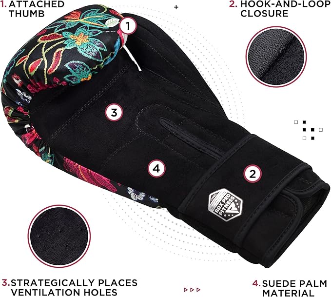 RDX Women Boxing Gloves for Training Muay Thai Flora Skin Ladies Mitts for Sparring, Fighting Kickboxing Good for Punch Bag, Focus Pads and Double End Ball Punching