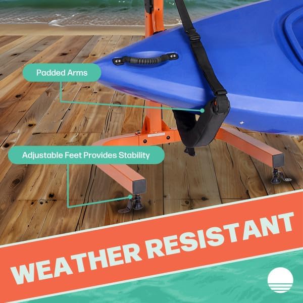 - HOLDS 2 KAYAKS - The kayak rack safely and securely stacks two kayaks or canoes vertically to preserve more floor space. The stands have J-shaped metal arms with protective padded sleeves to ensure your watercraft will not be damaged from storage.