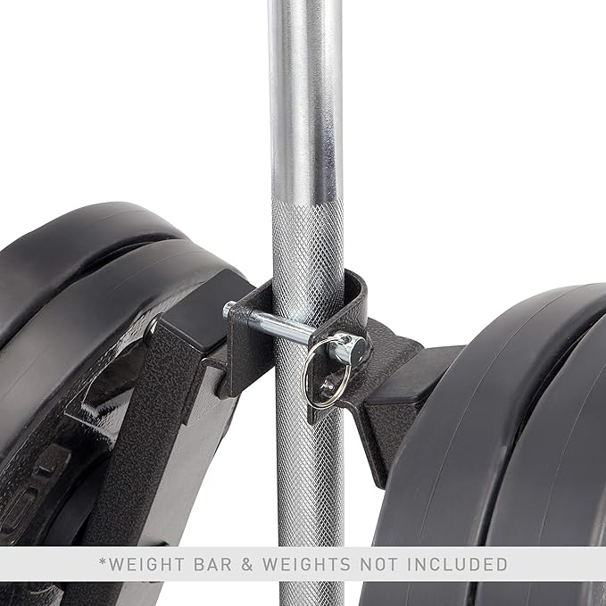 - SECURE WEIGHT COLLARS: This versatile rack comes with collars to secure the weights on each peg, preventing each from accidentally detaching and dropping to the floor. The posts and weight collars are designed to hold the heaviest plate firmly.