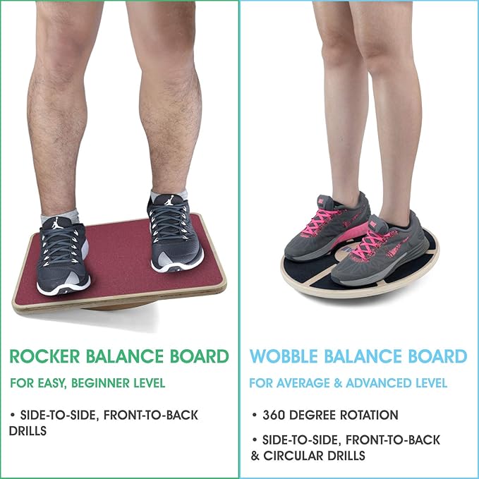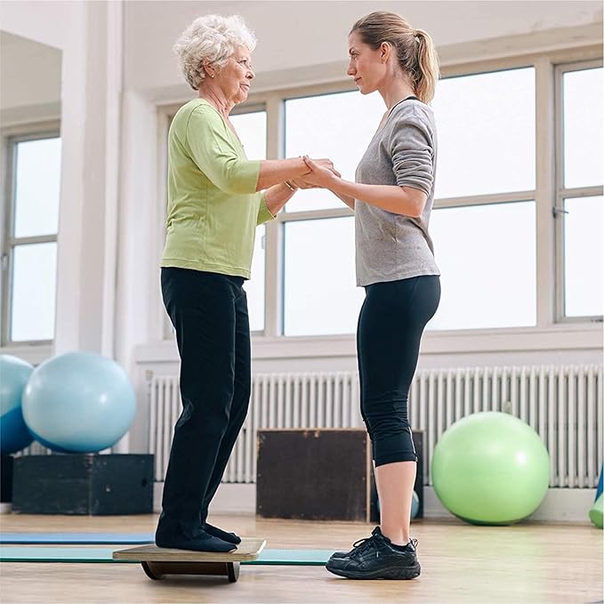 - GREAT BALANCE BOARD FOR PHYSICAL THERAPY: Balance Boards are used by physiotherapists and rehab centers across the world for effective injury rehabilitation; Good choice for beginners, the elderly, people with balance issues; Simply standing on the Rocker Balance Board and shifting your weight from side to side or front to back will engage and stretch the muscles in your lower leg, hamstring, groin and core; Great to regain strength and rehab injuries like ankle and Achilles injuries, etc
