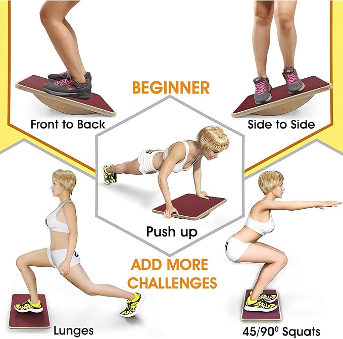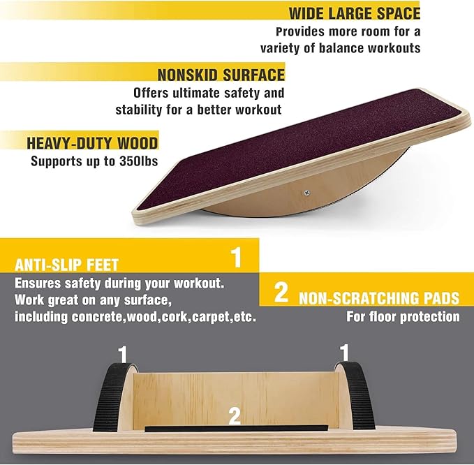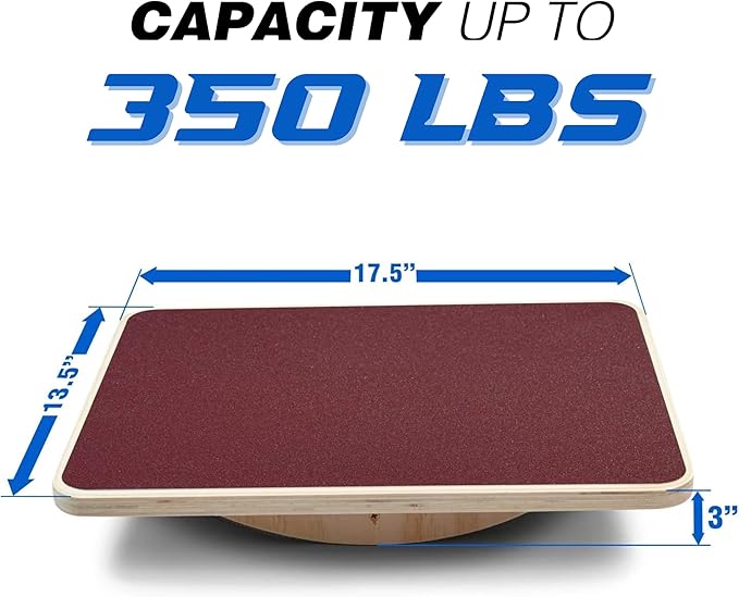 - ANTISLIP SURFACE & HIGH DURABILITY: Premium Balance Board Ankle with antiskid pad on the 17,5 inch surface provides better grip during your workout; Rocker Board is built to last, made of high quality heavy duty wood, support up to 350lbs