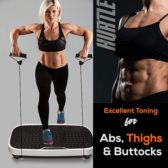 Hurtle Fitness Vibration Platform Machine - Home Gym Whole Body Shaker Exercise Machine Workout Trainer Fast Weight Loss w/Resistance Bands Easy Carry Wheel Remote Adjustable Speed
