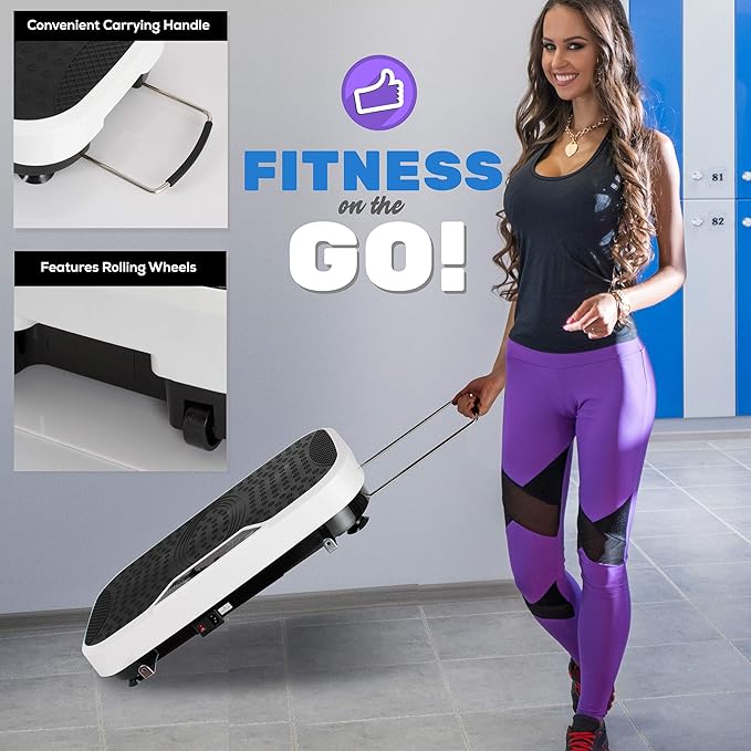 - ANTI-SLIP SURFACE: Features anti-slip surface board pad which ensures the safety of the user. Equipped w/ convenient carrying handle & rolling wheels for easy transport. The machine is proven to reduce cellulite, keep you fit & improve metabolic rate