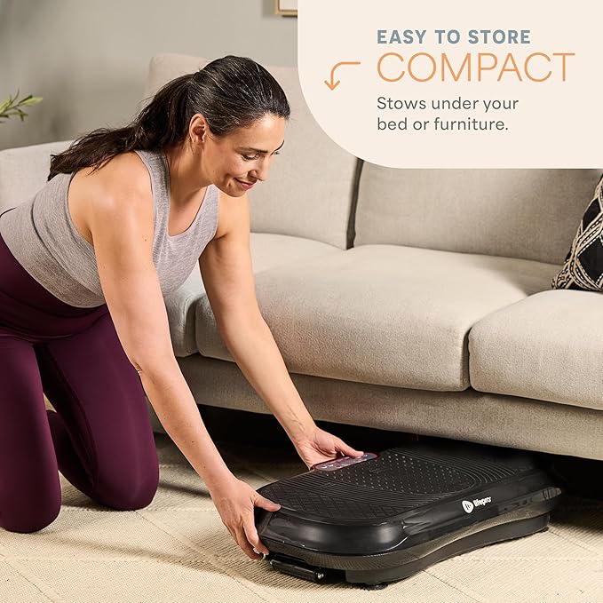 - Powerful and Customizable - Easily switch between 99 speed settings to maximize your workouts. The vibration board exercise machine features anti-slip rubber, a user-friendly display, and whisper-quiet vibrations for maximum convenience.