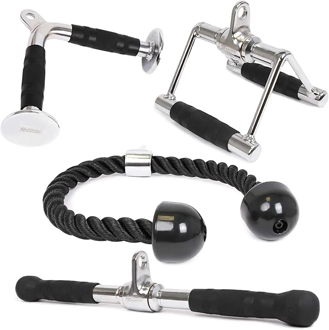 - Get the most out of your cable machine with our high-quality, solid steel attachments! Our V-shaped bar, V handle with rotation, straight rotating bar, and nylon braided tricep rope are all designed to help you isolate each muscle group for maximum results