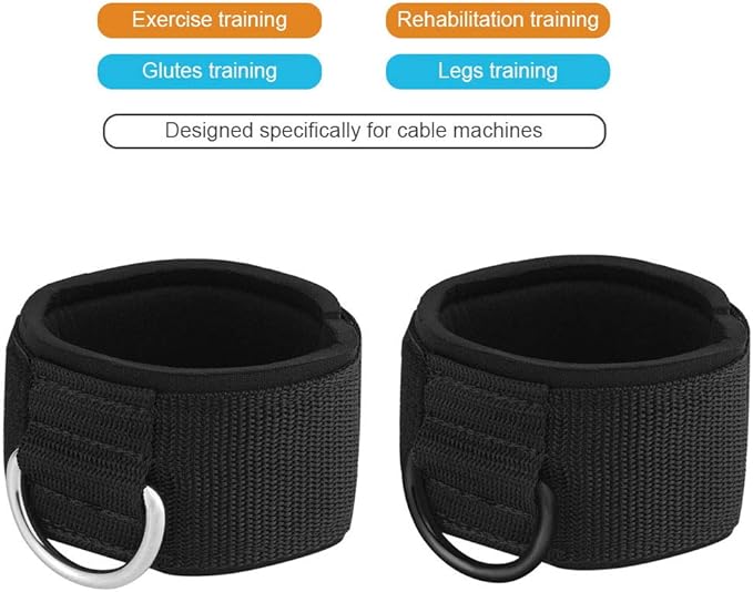Ankle Wrist Cuffs Neoprene Padded Straps D-Ring Glute Kickback for Cable Machines Legs Exercise Adjustable Fitness