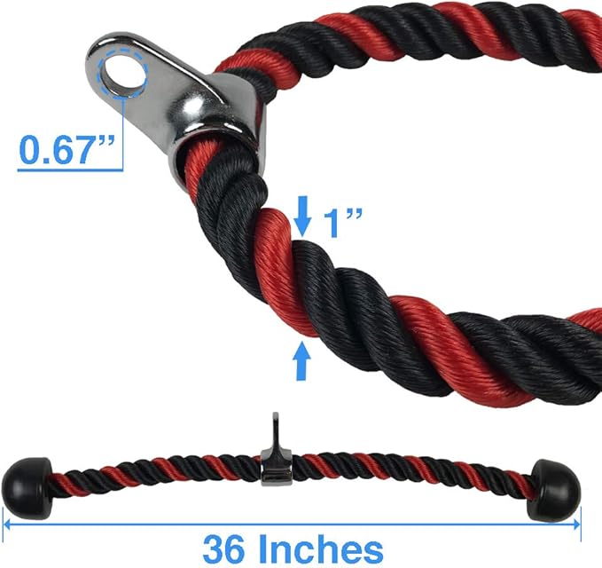 Red Tricep Rope Pull Down & Poster Set | 27 or 36 Inch Heavy Duty Nylon Rope, Chrome Cable Attachment | Professional or Home Gyms | Includes Workout Poster, Snap Hook, Bag