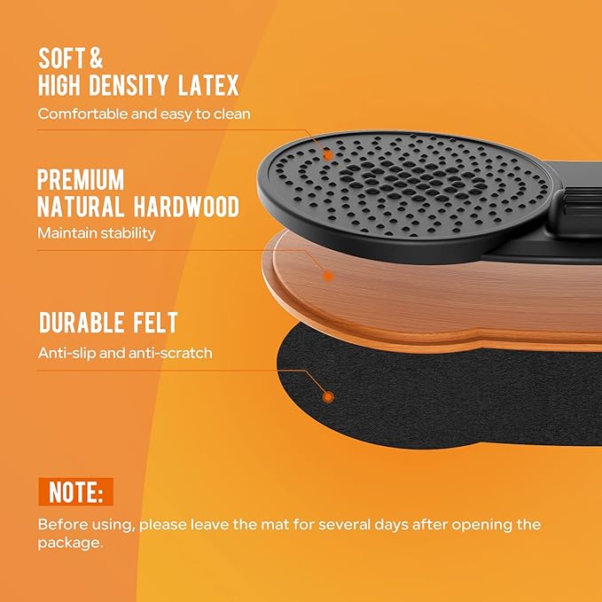 - 【DURABLE & STABLE】--The balance board is made up of 3-layer qualified materials with maximum weight capacity 350LBS, the top surface is soft and high-density latex, the hardwood middle layer provides the ultimate safe and comfortable experience. The durable base is anti-slip and anti-scratch to enhance safety and protect you floor.