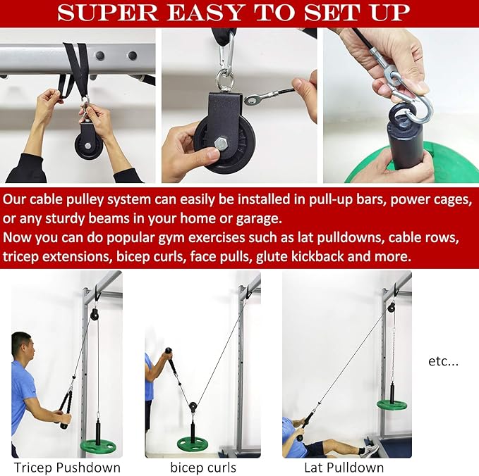 - 💪 DO MORE - This versatile home cable pulley system lets you perform a wide variety of exercises at home, including triceps press-downs, biceps curls, lat pull-downs, face pulls, and cable rows.