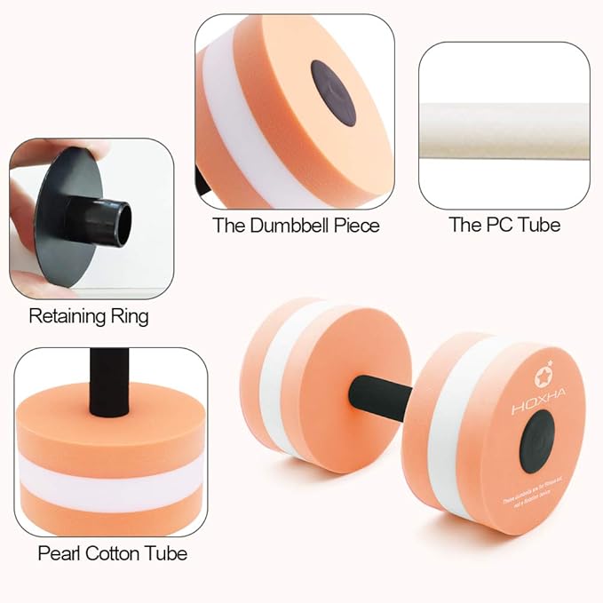 - HIGH QUALITY FOAM & COMFORTABLE GRIP - HOXHA aquatic dumbells are made of high quality EVA material, tasteless and waterproof,the resistance of the barbells will provide an overall workout for your upper body, lower back and other parts.