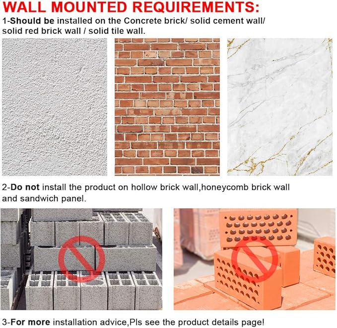 - 【Wall Mounted Requirements】 Concrete wall or brick wall is suggested for mounting this pull up bar and dip station. DON'T install on drywall, plaster walls and cavity.