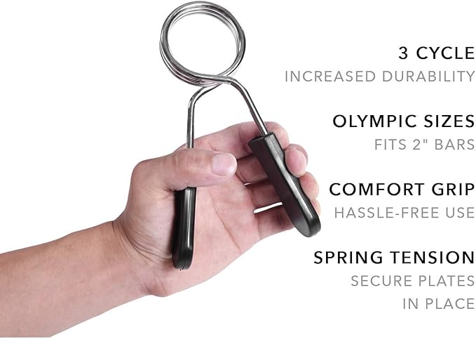 - Barbell clamps suit for 2 inches Olympic size. Perfect for high-intensity fitness program workouts, Olympic lifts, overhead press, deadlifts, bench press, or any other workout using 2 inches Olympic Barbell.