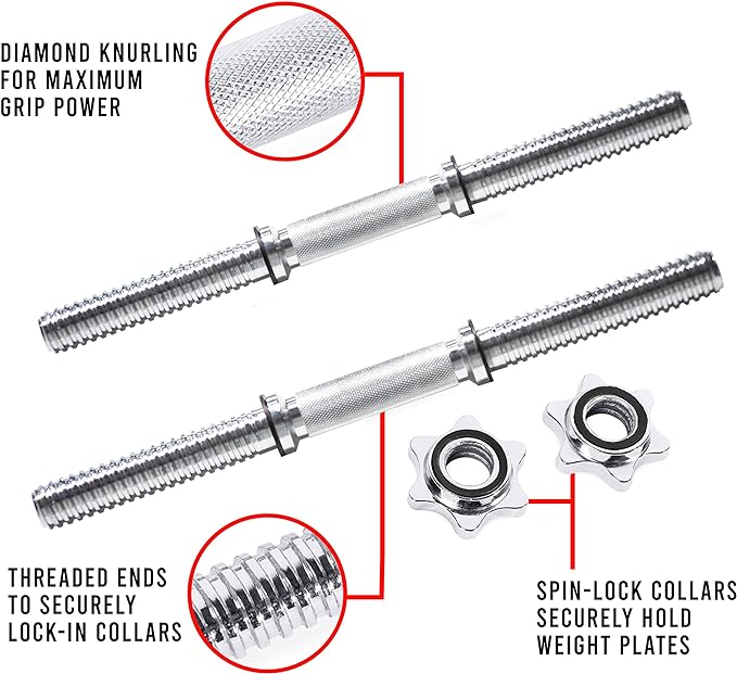 • STAR-LOCK COLLARS WITH RUBBER O-RINGS – Course thread star-lock collars are easy to tighten and loosen on threaded ends and help keep weight plates securely in place.
