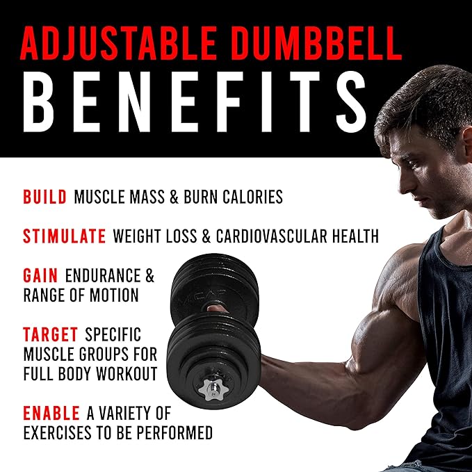 • EASY USE & STORAGE – Compact design makes this set convenient and easy to use and store. This all-in-one dumbbell set eliminates the need for multiple dumbbells in your home gym.