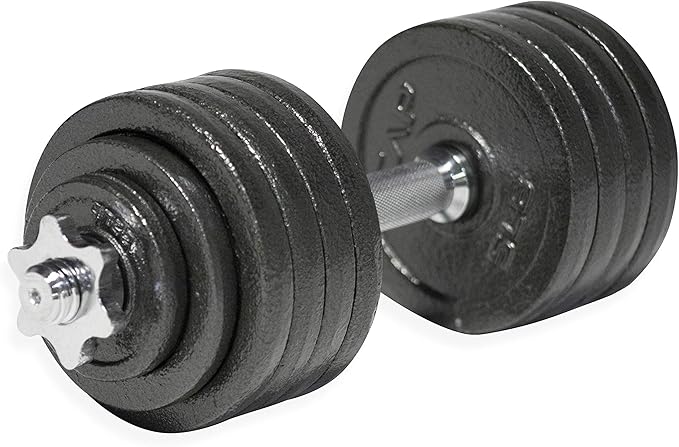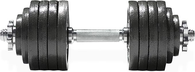 - Set includes – 52. 5 lbs. Total: one 17” dumbbell handle, two 1. 25-Pound plates, two 2. 5-Pound plates, eight 5-pound plates, and two star-lock collars.