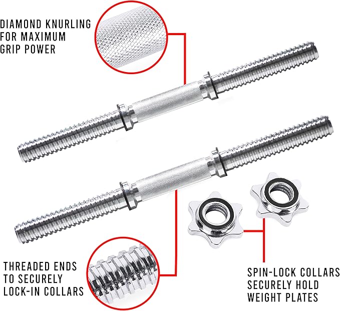 • STAR-LOCK COLLARS WITH RUBBER O-RINGS – Course thread star collars are easy to tighten and loosen on threaded ends and help keep weight plates securely fashioned while weightlifting.