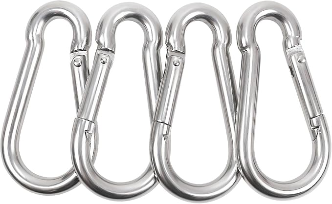 - 💪COMPACT DESIGN: Set of 4 - 3.1" x 1.5" Stainless Steel snap hook. It can be used with one hand. Snap hook lock gate prevents items from unwanted detachment.