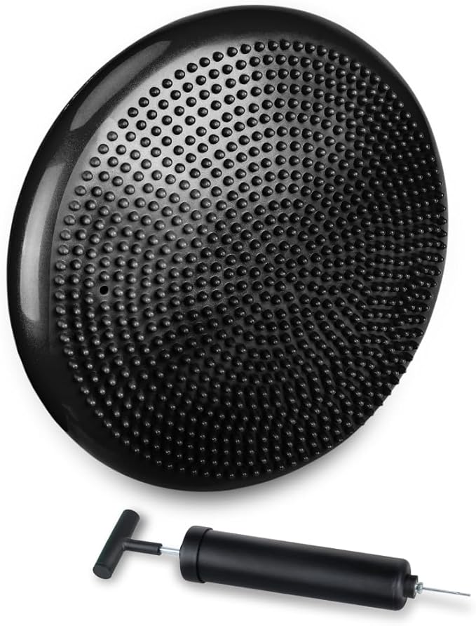 - Package Includes: The package includes ONE wobble cushion with One hand pump; 3 color available: Black / Blue/ Purple