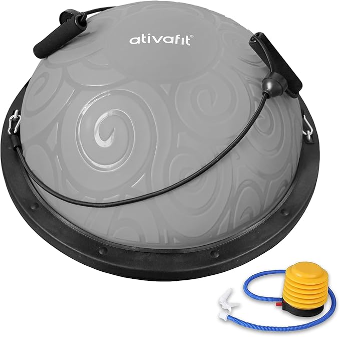 ATIVAFIT Balance Ball Half Exercise Ball Balance Trainer Inflatable Yoga Ball for Home Gym Workouts Core Strength Fitness Half Ball with Resistance Bands, Pump, Support to 660 lbs