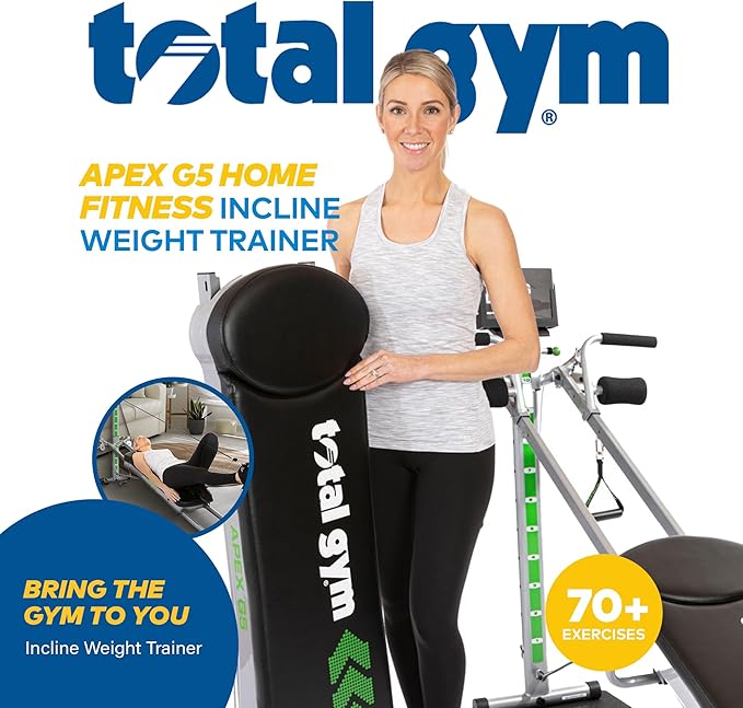 - VARIOUS WORKOUT OPTIONS: Start your at-home workout with 8 resistance levels and over 70 exercises using Total Gym; Enjoy low-impact, fluid movements, effortlessly transitioning between exercises
