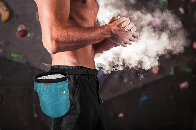 - DRAWSTRING STYLE: It is designed with the drawstring to open or close the bag, which makes more easy to access to the chalk and keeping loose chalk inside from spilling out.