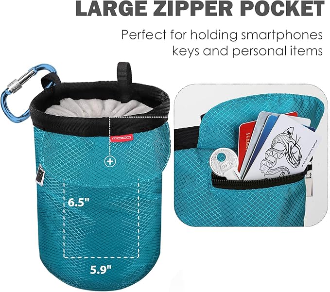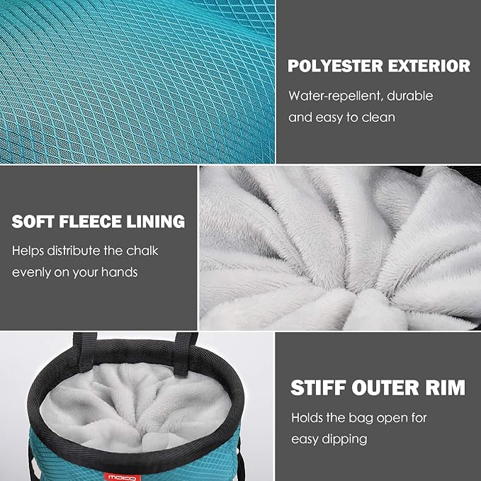 MoKo Rock Climbing Chalk Bag, Bouldering Chalk Pot Bucket with Adjustable Belt & Carabiner Drawstring Climbing Gear