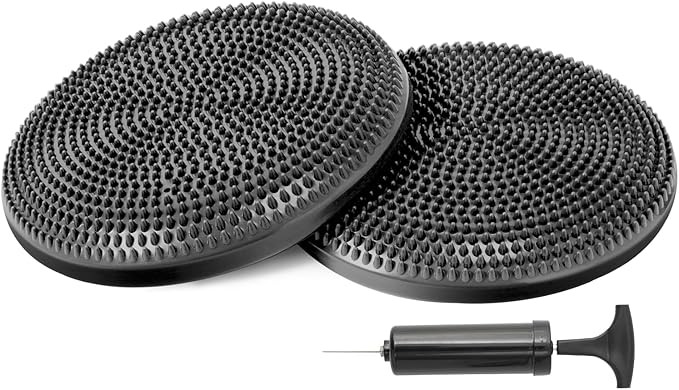 - 【Accessories and Load limited 】load limited 500 lbs. Inflator included. Pump can make adjustment very easily. Wobble cushion use in fitness training for core, balance, and stretching exercises. Also balance stability disk can be as a seat cushion for active sitting, similar to using an exercise ball as a chair.