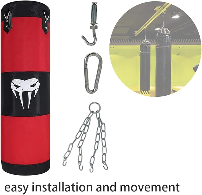 - This hanging punching bag can be easy installation and movement, unfilled heavy bag can be used for Boxing, MMA, Muay Thai, Kickboxing, Karate, Home Gym Training.