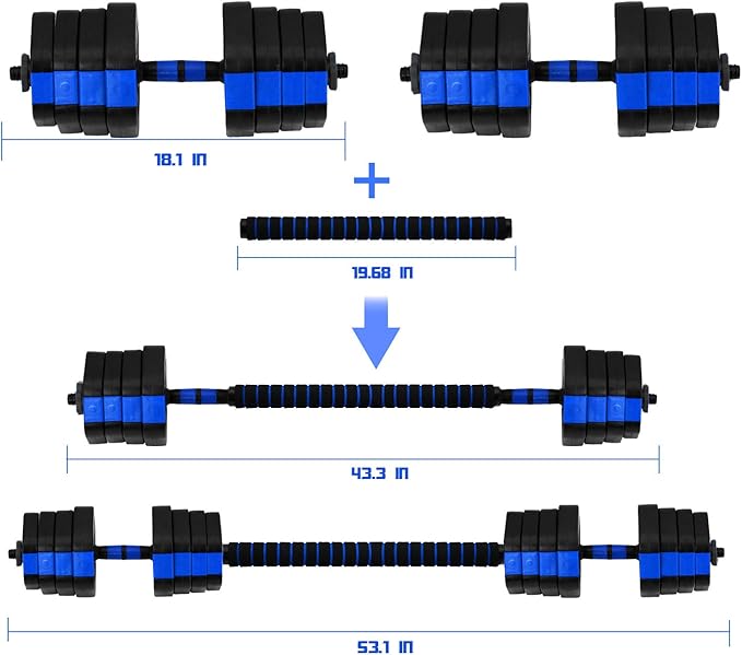 - Flexible & Customizable: The Vivitory adjustable dumbbell set offers adjustable weights that can go up to 66 pounds, making it a perfect choice for a weight set for home workout. It comes with quality connecting rod, handles, screw nuts, and weight plates, giving you a wide range of weight options. You can easily convert it from dumbbell to barbell for a variety of exercises, and it's suitable for fitness novices and professionals alike
