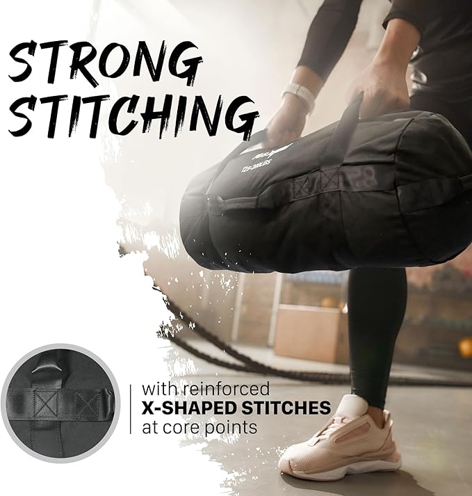 - 💪 HEAVY DUTY CAPACITY: The workout sandbags are high-quality nylon with waterproof PU coating, offering durability for regular workouts; Its strategic design with strong inner bags and X-shaped stitches on handles helps training seamless & hassle-free