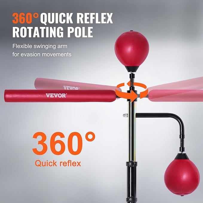 - 360° Reflex Rotating Pole: The free-standing reflex punching bag comes with a 360° rotating reflex pole, ideal for training reaction, accuracy, and agility. The flexible 360-degree rotating pole not only exercises arm muscles and aids in weight loss but also enhances coordination and reaction speed.