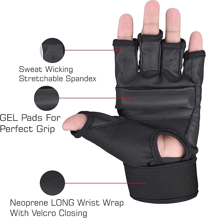 - Sweat Wicking Stretchable Spandex On The Inside With Gel Pads For Perfect Grip.Knuckles And Front Is Made Up Of High Quality Leather And Padded With Rubber Gel And Foam.