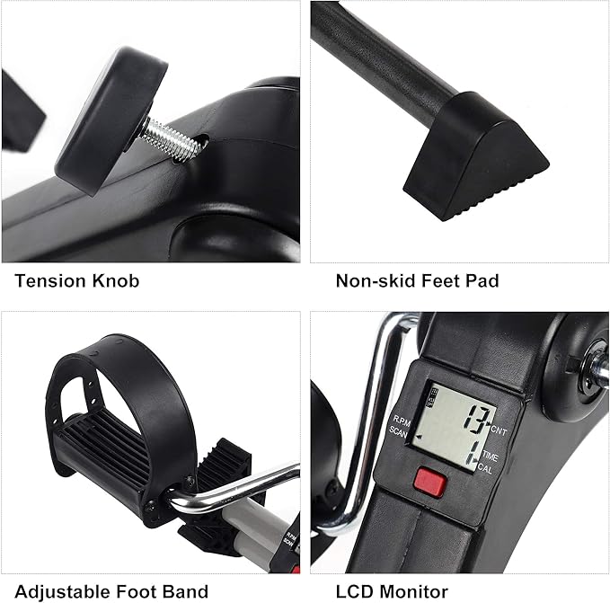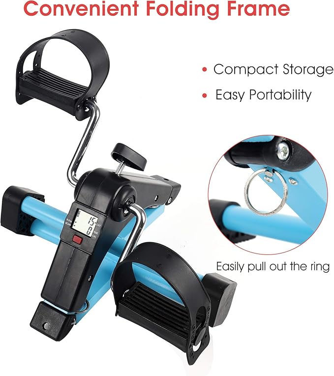 - QUICK-RELEASE FOLDING DESIGN - Easy to fold and open, convenient for carry and store, and the foldable design makes the peddler portable. Our pedal exerciser makes it easy to get safe and effective exercise while working, watching TV or any other time when your arms or legs are free. Product is fully assembled.