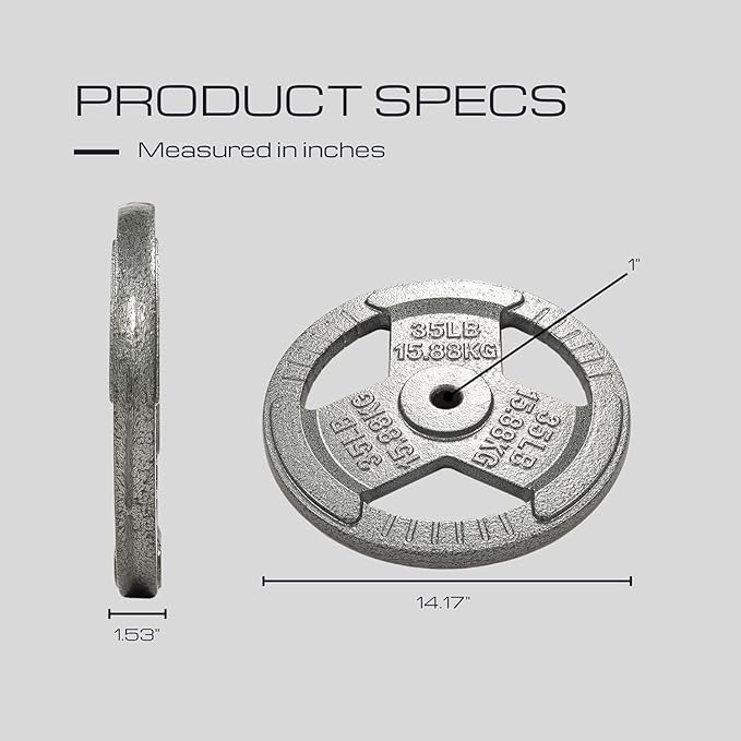 - Purpose - Increase overall health and fitness with our multi-grip 1 inch and 2 inch Cast Iron Weight Plates, which is a must have for any home or garage gym set up. Our Cast Iron strength training plates are coated with enamel to help prevent the potential of corrosion and rust.