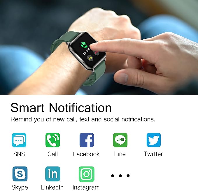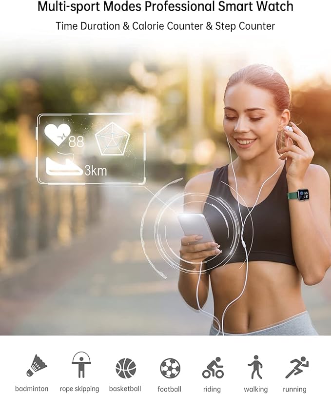 - Life and Fitness Companion: The smart watch with 7 sport modes records your all-day activities including steps, distance, calories, sleep status and heart rate. It shows your periods of deep sleep, light sleep and waking time. Note: Walking, Running, Cycling, Skipping, Badminton, Basketball, Football.