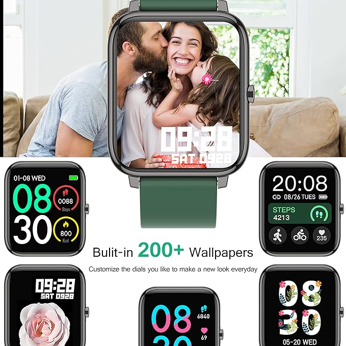 Popglory Smart Watch, Smartwatch with Blood Pressure, Blood Oxygen Monitor, Fitness Tracker with Heart Rate Monitor, Full Touch Fitness Watch for Android & iOS for Men Women (Green)