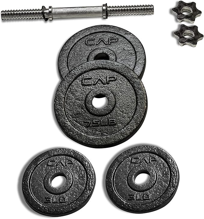 - Dumbbell Set Includes – 25 lbs. Total: One 14” standard dumbbell handle, 2 x 3-pound plates and 2 x 7.5-pound plates, and two star-lock collars; Includes 30-day manufacturer warranty