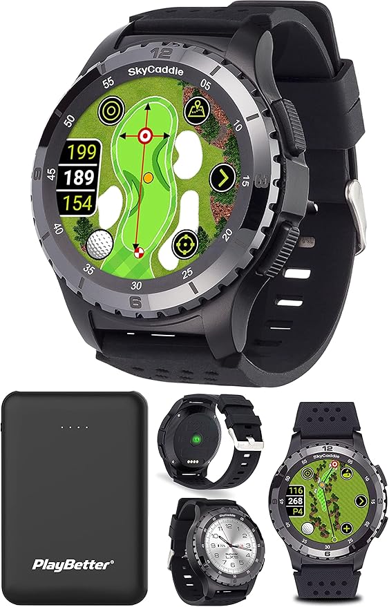 PlayBetter SkyCaddie LX5C Golf GPS Watch Bundle - Touchscreen Golf Range Finder Smartwatch w/Ceramic Bezel, 35K Courses, HoleVue, IntelliGreen, & Digital Scorecard 5000mAh Portable Charger