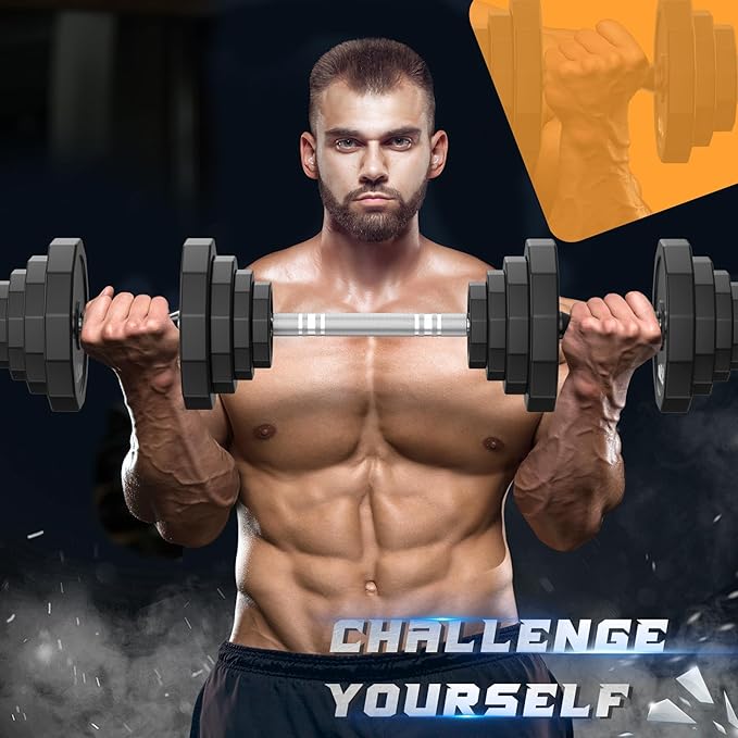 - 【Multi-purpose Design】- Not limited to different dumbbells combination, the fitness equipment comes with a connecting rod and can be assembled as barbell to improve leg muscle training. Multi-functional strength training equipment offers a better training way than other home gym equipment.