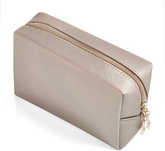 PU Leather Cosmetic Bag for Women Minimalism Makeup Bag for Daily Use Portable Storage Purse Small Neat Cosmetic Pouch Water-resistant Toiletry Bag for Travel (Coffee)