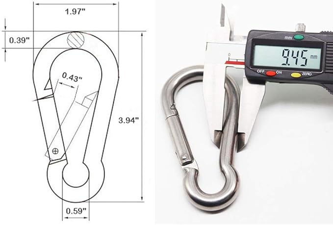 - 【Package Contents】 - You will get 2 packs 3.94 inches heavy duty spring snap carabiner, the Length: 3.94 inch (100 mm), and the Width: 1.96 inch (50 mm), which is large enough for any hammock or swing.