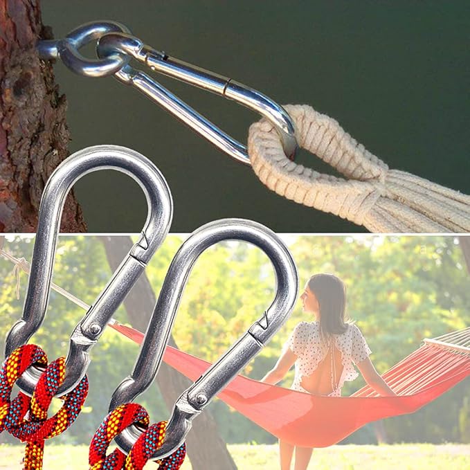 - 【Not for Hammock Only】 - These stainless steel hooks are designed not for hammock usage only, they also can be used for dog leashes, camping, fishing, traveling, backpack hiking, gym exercise and a lot more.