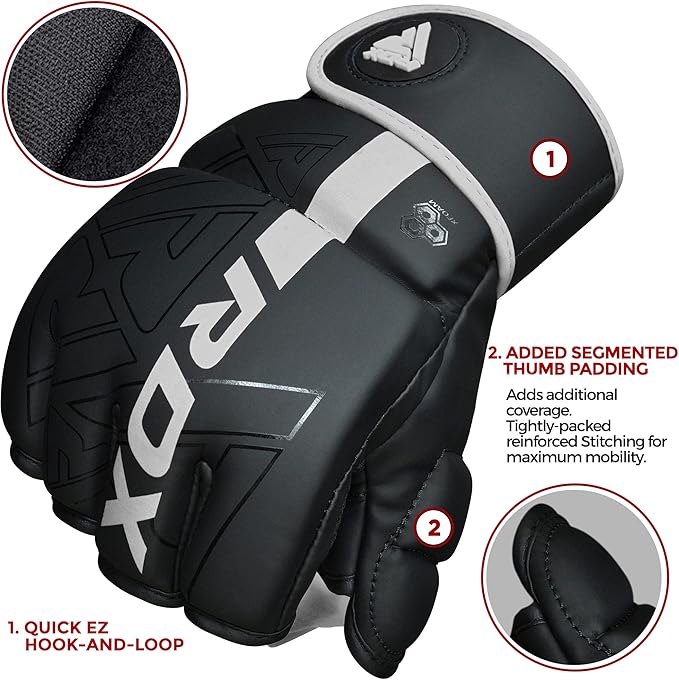 - EXPERIENCE UNMATCHED DURABILITY – RDX’s MMA gloves are your dependable training partner, offering unmatched durability when mastering the art of grappling and takedowns. These padded MMA gloves, constructed from rugged ConvEX Skin Maya Hide leather, are designed to endure and enhance your every punch and move. Whether you're preparing for an MMA bout, honing your Muay Thai skills, or practicing for any other combat sport, you deserve gear that's just as tough as you are.
