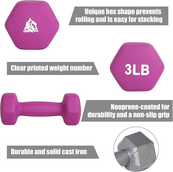 LIONSCOOL Set of 2 Neoprene Coated Dumbbell Hand Weights, Anti-Slip and Anti-Roll Hex Dumbbells in Pair for Strength Training, Resistance Training