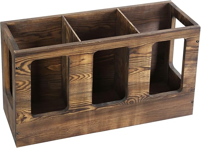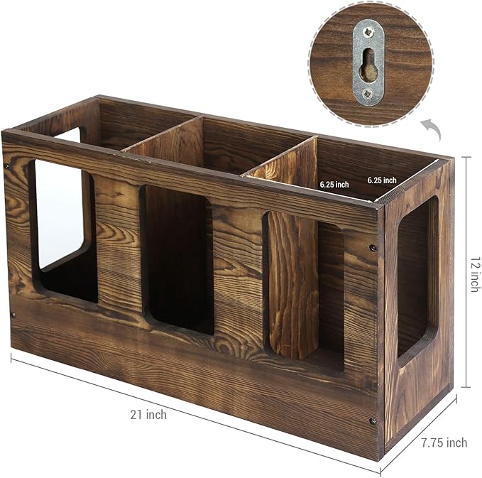 - Dark brown wood construction seamlessly blends with rustic and contemporary decors for added stylish storage and convenient accessibility