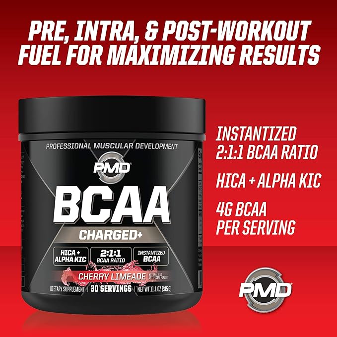 - BCAAs for Professional Muscular Development: Whether used as a pre-, intra-, or post-workout, branched-chain amino acids (BCAAs) are an essential part of an effective sports nutrition regimen. PMD's BCAA are instantized formulas that are highly soluble, so they mix well in liquids. They offer an effective means to help maximize muscular performance during exercise, and they can help enhance recovery. Use PMD's BCAA to take your results to the next level.